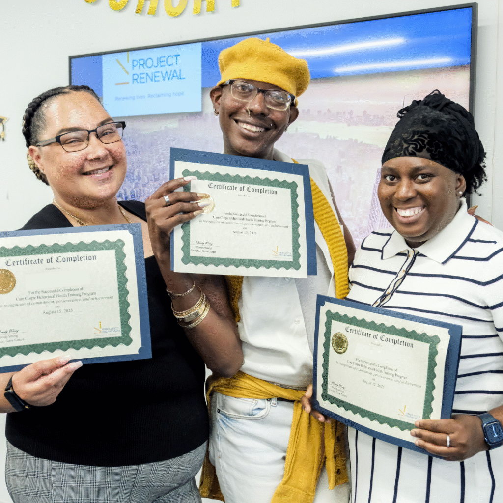 After graduation, Project Renewal staff assists with job applications and interview preparation, making for a smooth transition into the behavioral health workforce. By training compassionate, job-ready professionals, Care Corps is addressing New York City’s growing need for skilled behavioral health workers — one person, one career, and one community at a time.